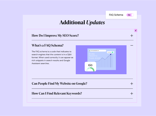 Enhance visitor experience by creating custom designs in an interactive Accordion layout that is perfect for FAQ sections that boost your SEO score.